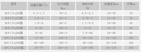 ■ 表中技術參數作為選型參考,每個品種的泵都裝有安全調壓,泵的壓力可任意調節